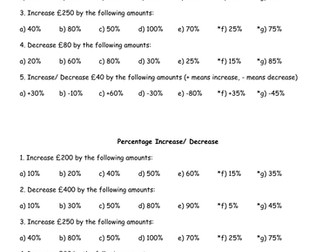Percentages - WorksheetMath A combination of percentage increase/decrease and reverse percentage problems. Compound interest. Repeated percentage increase problems.